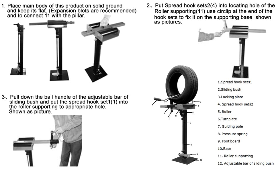 The adjustable tire spreader can accommodate all tires from garden service through light truck.